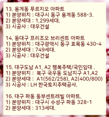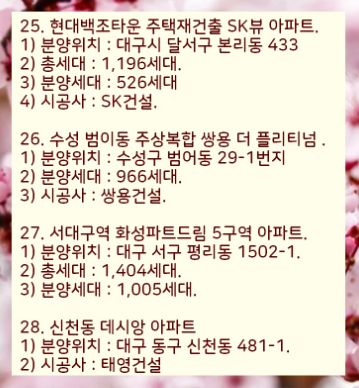 아래 대구 분양아파트 청약일정을 참고하세요.