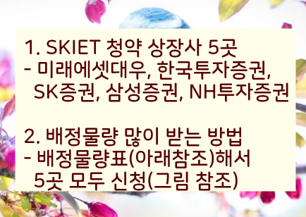 skiet 공모주 청약방법은 상장 주관사 5곳에서 신청해야합니다.