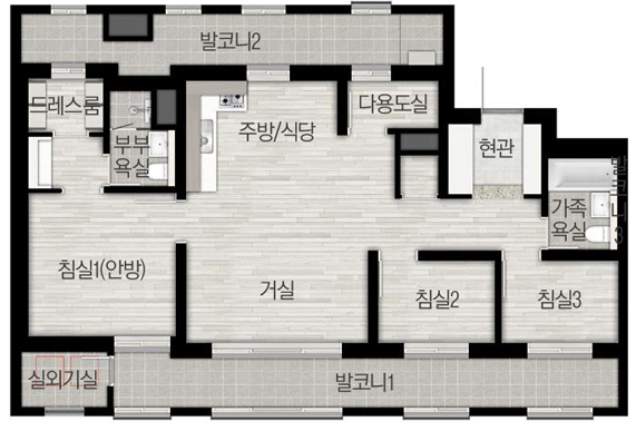 마지막으로 북수원 자이 렉스비아 아파트 평면도중 가장큰 99형입니다.