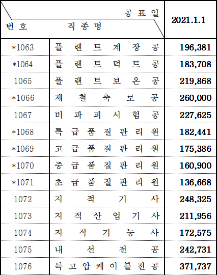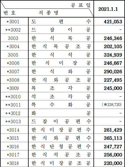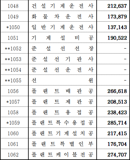 2021 상반기 노임단가중 낮은 보수의 기술자 및 노동자분들의 처우가 점점 나아지길 바랍니다.