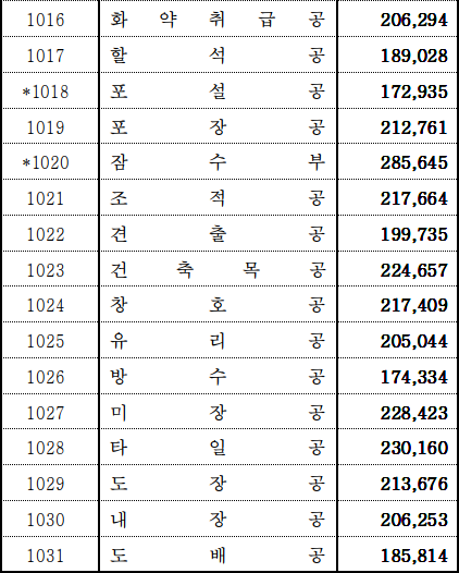 여성들도 많이 일하시는 미장공도 228,423원으로 생각보다 단가가 좋은편입니다.