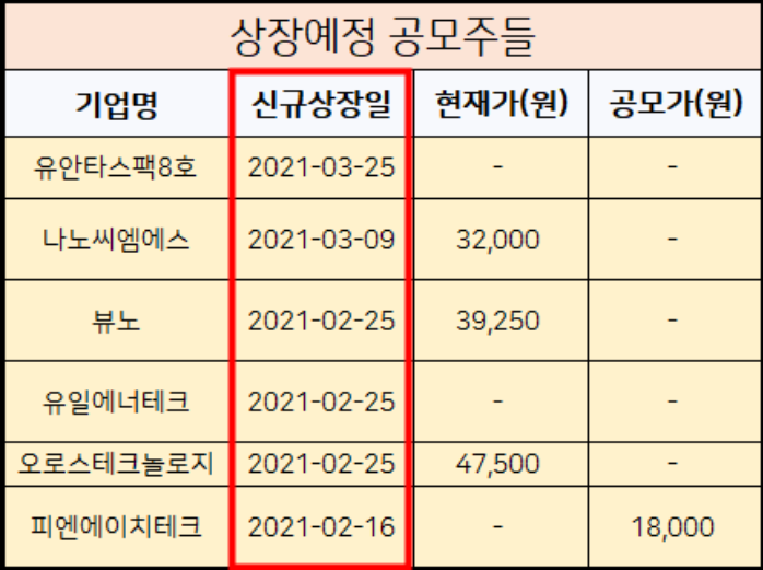 이 포스팅을 읽는분들을 위해서 위에 3월 신규상장 공모주 청약일정표를 첨부해드렸습니다.