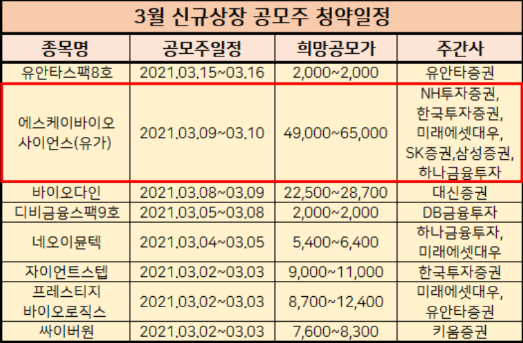 3월에 공모주 청약일정인 sk 바이오 사이언스 상장일정을 알아보겠습니다.