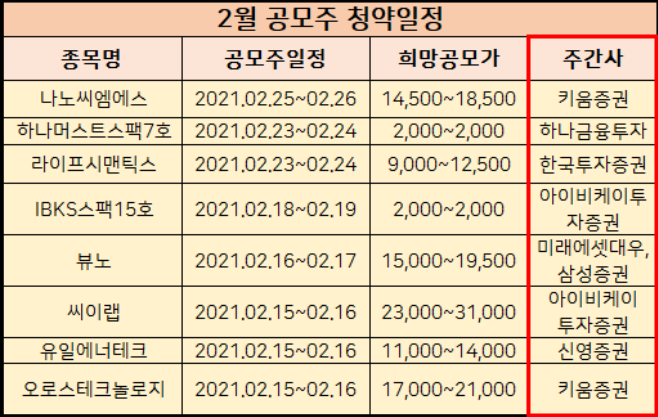 그리고 2월에 아직 진행이 안된 공모주 IPO들도 올려드렸습니다.