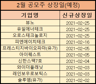 2021년 2월 공모주 청약일정표 꼭 참고하세요.