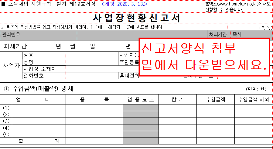 * 면세사업자 사업장현황신고서 양식은 아래에 첨부해놨으니 참고하세요.
