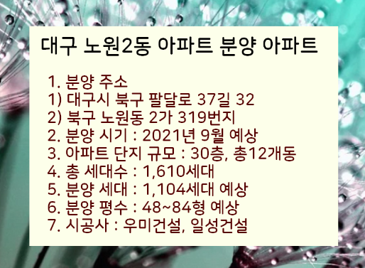 이렇게 대구 노원2동 재개발 아파트 분양을 요약해서 알려드렸습니다.