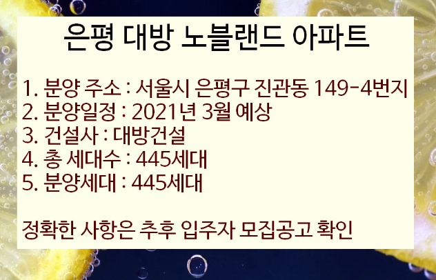 은평뉴타운 대방 노블랜드 아파트 분양정보를 요약해보겠습니다.