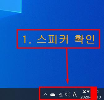 2. 우선 윈도우10을 사용하시는분들은 오른쪽 아래에서 스피커 모양을 확인합니다.