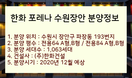 한화 포레나 수원장안 아파트 분양정보를 요약해보겠습니다.