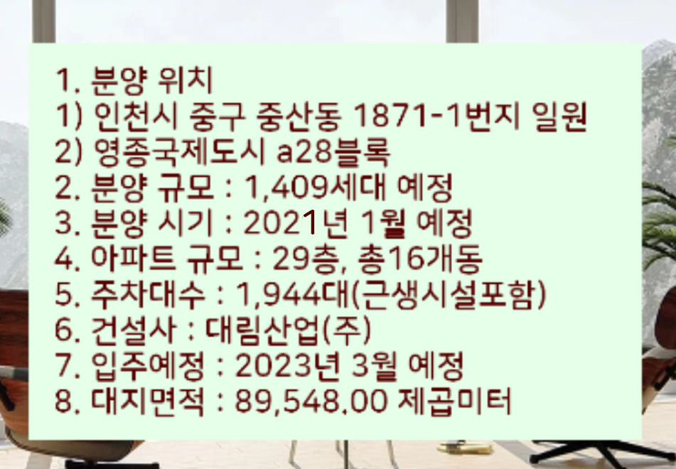 인천시에 아파트 청약을 준비하시는 분들이라면 실생활 거주목적으로는 좋은 아파트라고 생각합니다.
