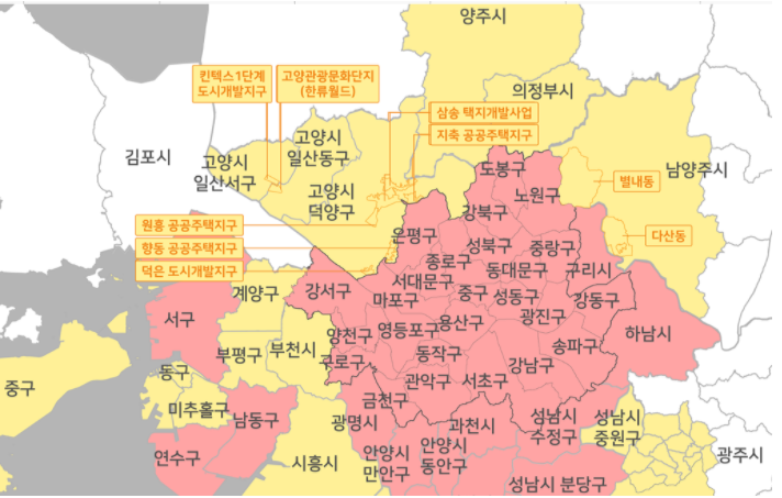 분양가 상한제 적용은 공공택지의 경우, 의무적으로 시행입니다. 그렇다면 민간택지내에 분양가 상한제가 적용되는 지역에 대해서 아래표로 보기좋게 정리해놨으니 참조하시기 바라며, 분양가