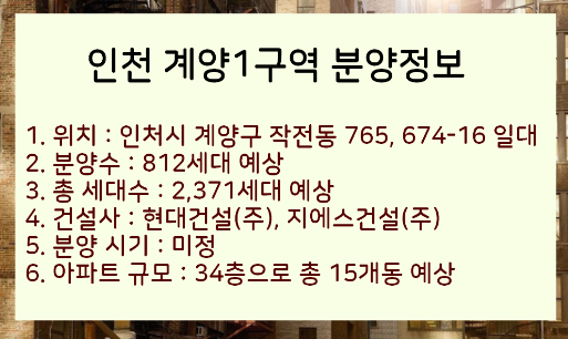 내년에 인천 계양지역중에 3기 신도시가 분양이 있을 예정이라는 의견들이 많습니다. 그래서 이번에 인천 계양1구역 재개발 아파트 분양에 대해서 많은분들이 관심을 갖고 있는데요. 아래에서 아파트 단지 규모, 입지적 위치 및 장점 등에 대해서 알아보겠습니다.