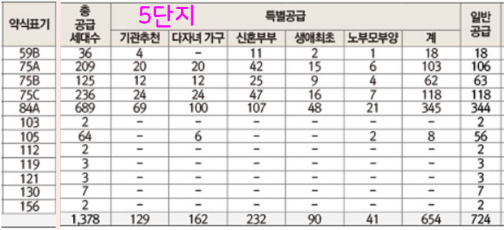 5단지 분양가, 특별공급과 일반공급 세대수