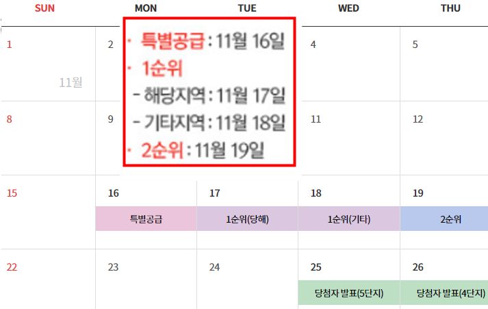 1. 특별공급 청약 일정 : 11월 16일