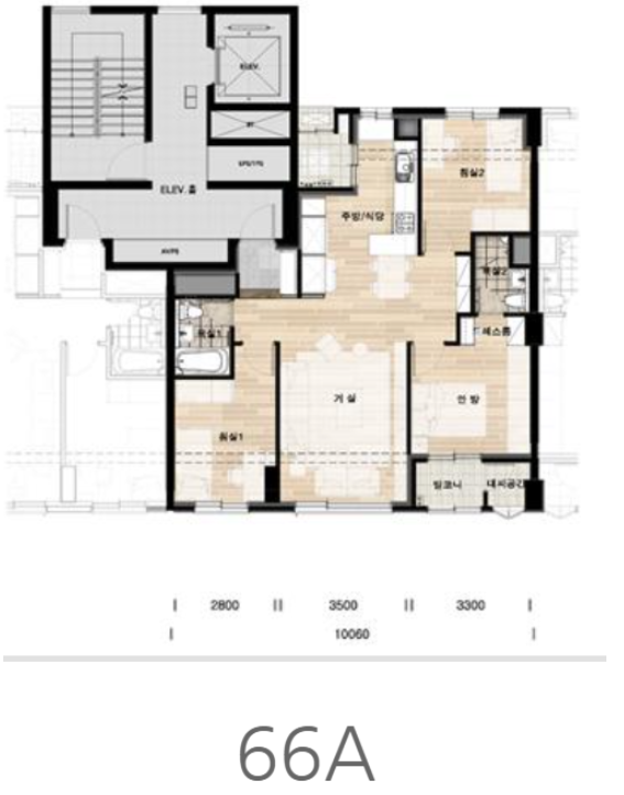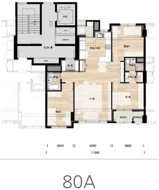 가장 작은 평수이지만 방이 3개입니다. 화장실도 2개이며 있을건 다 있습니다. 발코니도 있고 신혼부부가 살기에 작지는 않을듯합니다.