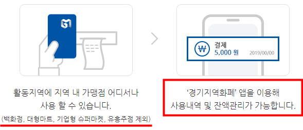 그리고 경기지역화폐는 백화점과 대형마트, 기업형 슈퍼마켓, 유흥주점에서는 사용하실 수 없습니다. 그렇기 때문에 이렇게 사용처를 확이하셔서 가맹점에서 사용하시기를 당부드립니다.