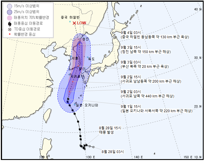 두번째. 9월2일 3시경에 제주도 서귀포시 남쪽에 해상할 예정입니다.