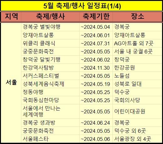 2024년 5월 축제 및 행사 일정을 정리했습니다.
