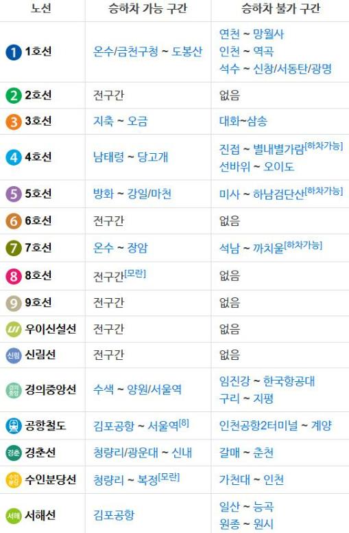기후동행카드로 경기도에서 하차가 가능한 지하철은 다음과 같습니다.