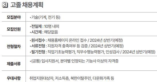 3. 고졸 채용 : 10명(2,555만원).
