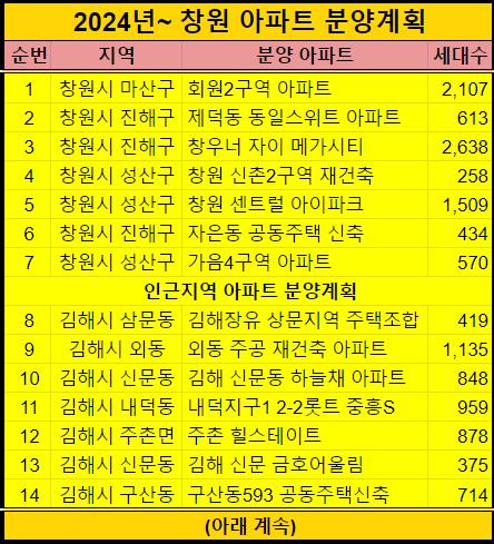 이렇게 2024년 창원시 아파트 분양계획을 알려드렸는데요.
