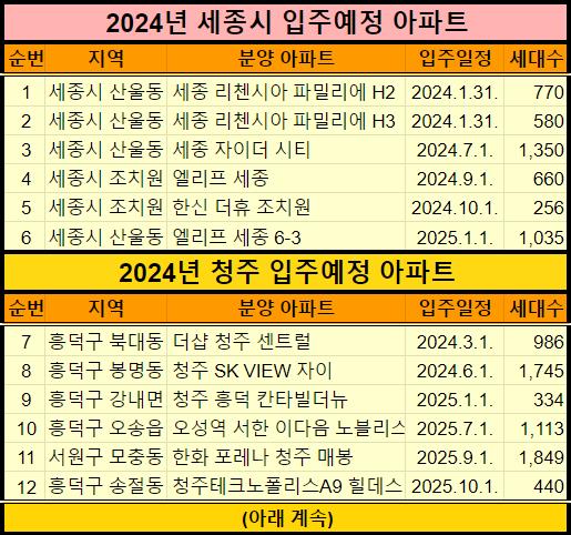 아래 2024년 청주, 대전 아파트 입주계획도 같이 확인하세요.