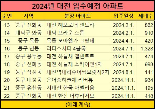 추가적으로 2024년 청주, 대전광역시 입주예정 아파트도 같이 올려드렸습니다.