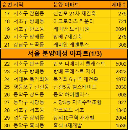서울 분양예정 아파트들을 확인하시기 바랍니다.