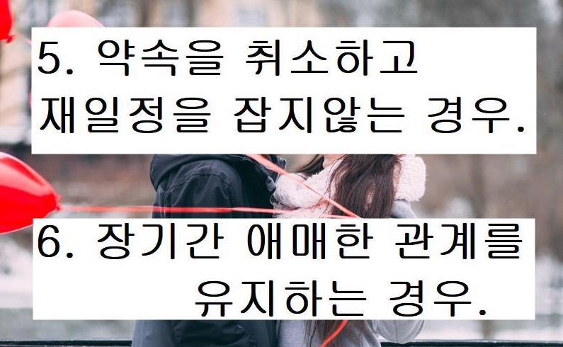 네번째. 만나자고하면 핑계대면서 약속을 안잡는경우.