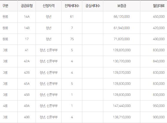 특별공급 44곳도 분양하는데요. 임대보증금과 월세가 저렴합니다.