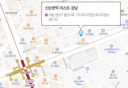1. 주소 : 서울시 강남구 봉은사로 125 리스남 강남.