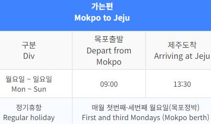 이렇게 목포에서 제주도가는 배 시간표를 올려드립니다.