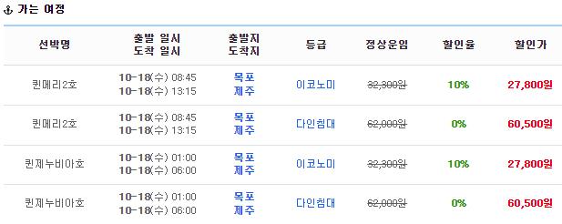 배표천국에서 10%할인을 받으면 목포-제주도행 배편 요금이 27,800원으로 저렴합니다 .
