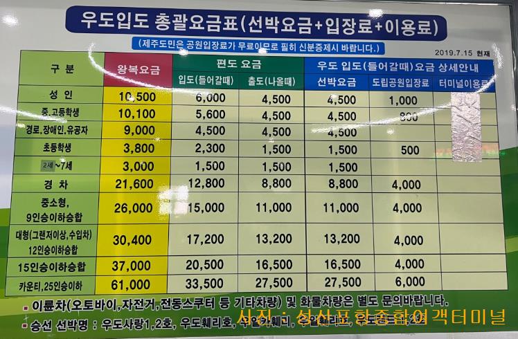 제주도에서 우도가는 배 요금표를 첨부하니 확인하세요.