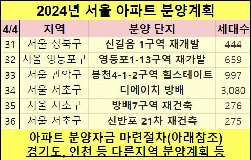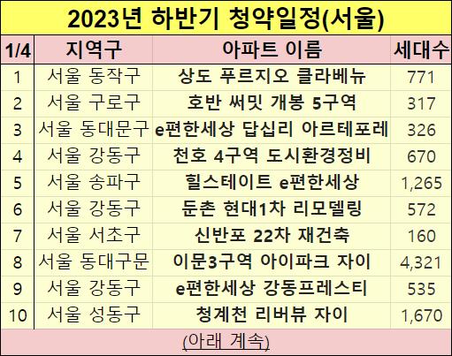 이렇게 2023년 하반기에 서울 분양예정 아파트들을 표로 정리했습니다.
