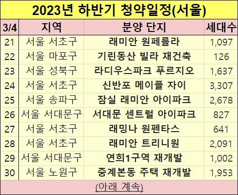 2023년 서울 하반기 분양일정을 표로 정리했습니다.