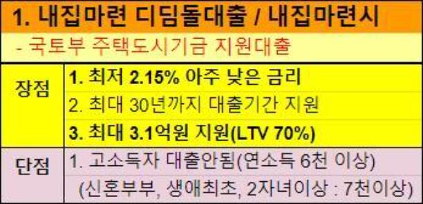 1. 한국주택금유공사 : 생애최초 주택담보대출.