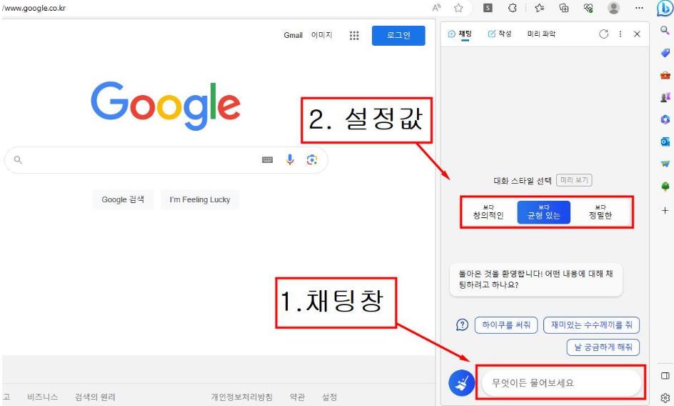 1. 마이크로소프트 엣지 웹브라우저에서 빙Chat GPT를 사용해야합니다.
