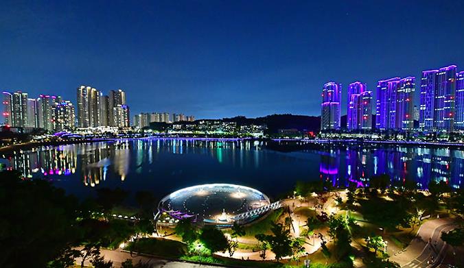 2. 야경 명소로 유명한 이유 : 호수공원 뷰가 좋고, 산책로와 시설이 잘 되어있습니다.