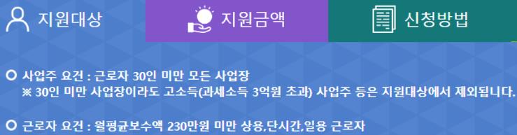 소상공인 또는 영세 중소기업 사업주도 경영부담을 완화할수있어서 근로자와 같이 윈윈하는 정부지원금입니다.