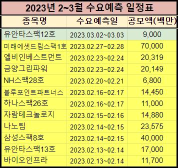 이렇게 2023년 2월에 신규상장 일정표를 올려드렸습니다.