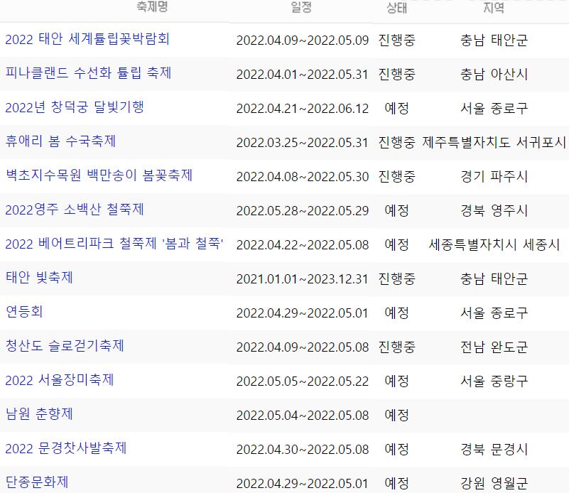 아래 5월 꽃축제 일정표를 확인하세요.