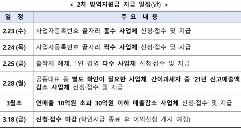 2차 방역지원금도 신청 대상별로 접수일정이 다릅니다.