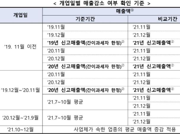 4. '19년,'20년 동기대비 '21년 11월 또는 12월 매출액이 감소한 경우 지급됩니다.