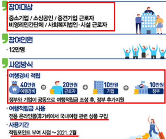 총 40만원의 근로자 휴가 지원금이 생기고,