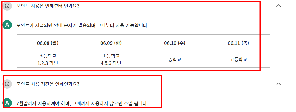 -> 포인트는 6월중에 적립되며, 적립시 학생 학부몬의 전화번호로 안내 예정