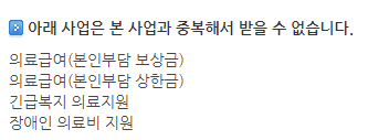 치매환자에게 지급해주는 치매 관리 치료비는 의료 급여 신청자나 긴급복지의료지원 신청자, 장애인 의료비 지원 신청자는 신청 자격이 중복되어서 지원하실 수 없다고 합니다.
