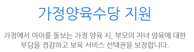 가정양육수당은 아이를 돌보는 가정의 부모님들께 자녀 양육의 부담을 덜어들이기 위한 보육 복지 서비스 제도라고 할 수 있습니다.