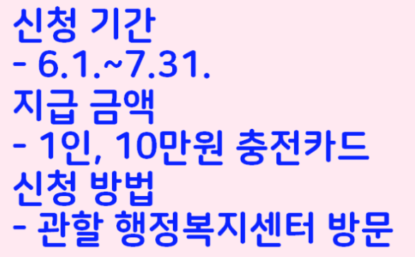 지급금액은 1인당 10만 원에 충전된 선불카드를 준다고 합니다.